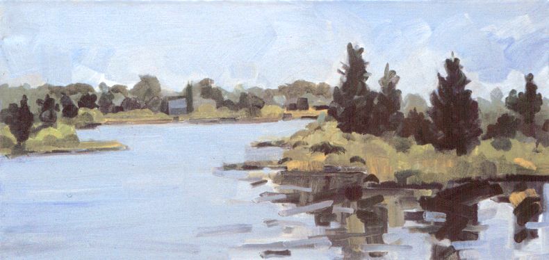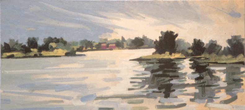 My own work began as I moved into the area of direct painting. I struggled for a few years following my studies at Cooper Union and in the studio classes of Nick Carone, to establish a personal style that would demonstrate the mastery of my studies. At one point I threw up my hands and abandoned all hope of ever discovering the great truths of abstract art. I packed up a paint box and walked across the street to the Staten Island waterfront. I began painting the snatches of New York Harbor visible through the deserted piers of the Stapleton waterfront. At the time I did not realize how connected this work was to my studies. I perceived it as walking away from my training (The Hofmann Technique), but my work had something in it that people responded to! A " sense of space"? I continued to paint from nature and had success in the blossoming "realist scene" in the early years of SoHo, in the 70's. I was labeled a painterly realist. I was most known for my pictures of New York Harbor. Recently while reading the excellent book by Cynthia Goodman on Hans Hofmann I encountered the phrase "Hans Hofmann's lifelong obsession with seascapes." Something clicked. I remembered my first pictures of the Stapleton waterfront. I divided the canvas with the main division, the waterline. I defined the space. I continued to find divisions and ended on the last step, which was to bring the light into the picture. I now see that I was painting out the vision handed to me in Nick Carone's classes, the Hofmann style of defining a space, finding volumes, expanding plastic space. It was all there in my seascapes, the enormous volume of light and air. I must say that I think Nick was a truly inspired artist who added greatly to the ideas of Hofmann, especially when he spoke about light and pictorial metaphor. I now understand how seascapes are the perfect medium for this technique. There is the deep space of the sky vaulting backward into the horizon and its perfect reflection in the water. When one paints water there are a number of different elements: the surface of the water, the reflection of the sky, the reflection of skyline, boats or other objects adjacent to the water, as well as the multifaceted nature of its surface. Also, one must see the water as a volume that is defined by its limits. Now after thirty years of painting I must ask myself: What did I get from studying this technique? When I originally studied, Nick's whole emphasis was on finding abstract form in nature. The whole class was geared toward making abstract art. I always felt that I failed this expectation. My work was about image. But having this formal imprint in my mind I was able to see nature in terms of its abstract structure. As I slowly built my own vision and technique I now see how I was guided by this technique and understand how a whole generation of artists who studied it as well were inspired by Hofmann: Wolf Kahn, Lois Dodd, and Nell Blaine, to name a few. Nell Blaine, I know, was listed as one of his early students. She was an excellent painter who suffered a debilitating accident and painted from a wheelchair most of her life. She showed regularly on Fifty-Seventh Street. Her paintings were always brilliant, mostly flowers and still life subjects, reds to break your heart. When I was showing at Green Mountain Gallery, the Gallery must have sent her an announcement of my show. She sent me a wonderful note complimenting my work and wishing me luck. I think if you are aware of the technique, you see it in others. And just how does this technique affect painters of realism? One of the main contributions to the painter of realism that this technique has to offer is its connection to the painterly tradition. The tradition with Rembrandt at its helm. Hofmann admired Rembrandt greatly. This tradition goes for a greater truth of light and form and eschews details, especially linear detail. Plastic space constructs the picture, not detail. Negative space becomes a defining element in the construction of pictures as well. I recently sold a painting to a woman who first saw my work on the Internet. She told me that she loved my harbor and marine subjects best. "They are so abstract!" she told me. Now when I see my paintings, I realize that all of the Hofmann ideas are there. Yes, there is push and pull, the spaces open up. I really know how to nail a subject back into space. I see it almost as a full circle. Hofmann and the cubists/modernists took apart space and defined a new way to represent it, staying within the painterly tradition. I studied this technique as a way to make abstract art and now use it too as a measure of the natural world that I paint. My pictures however don't really make it as "realist works", they are so much more an expression rather than a description.
